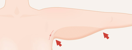 Bước 1 Rạch ngang (nếu chỉ bị chảy xệ ở vùng nách)